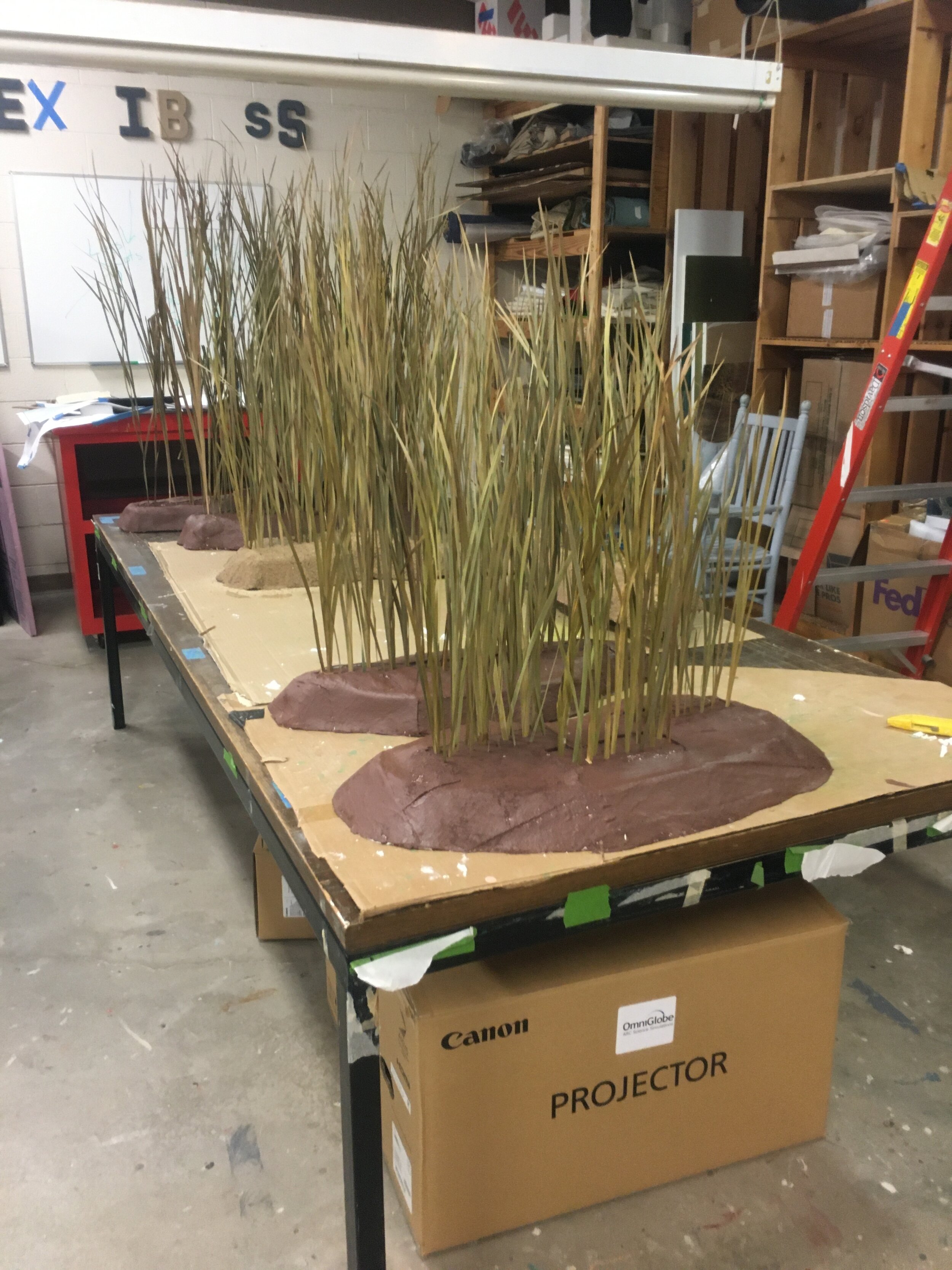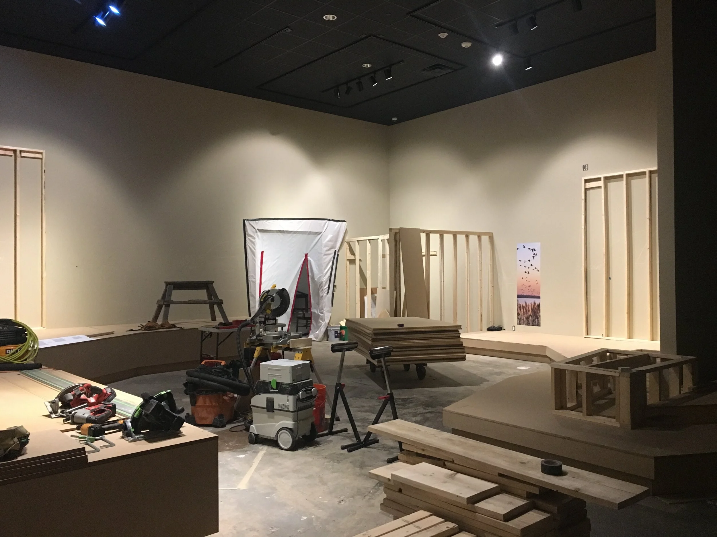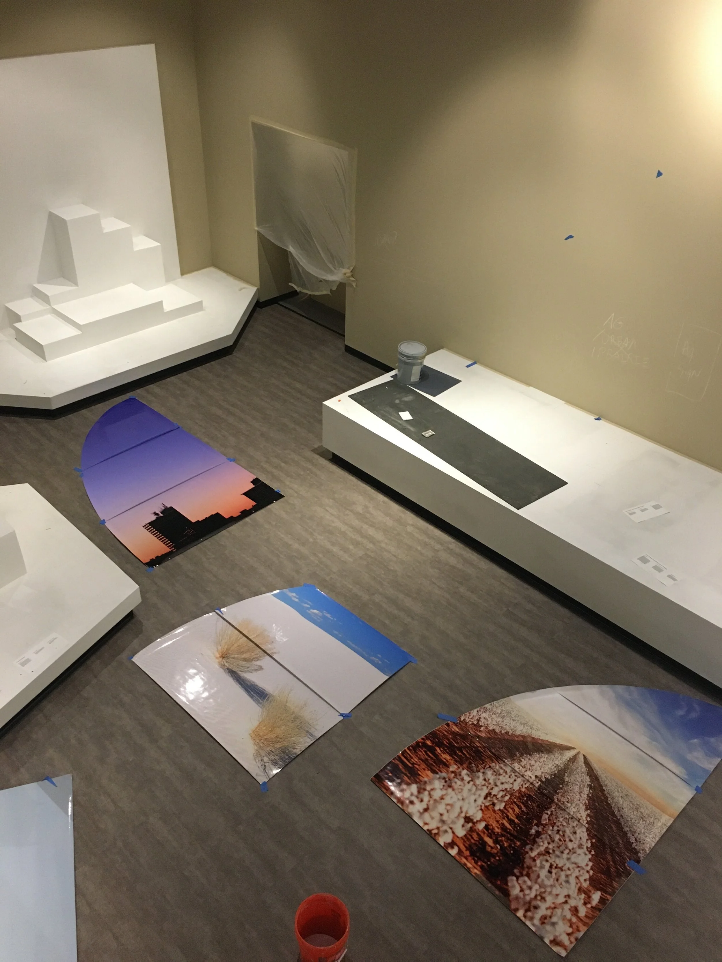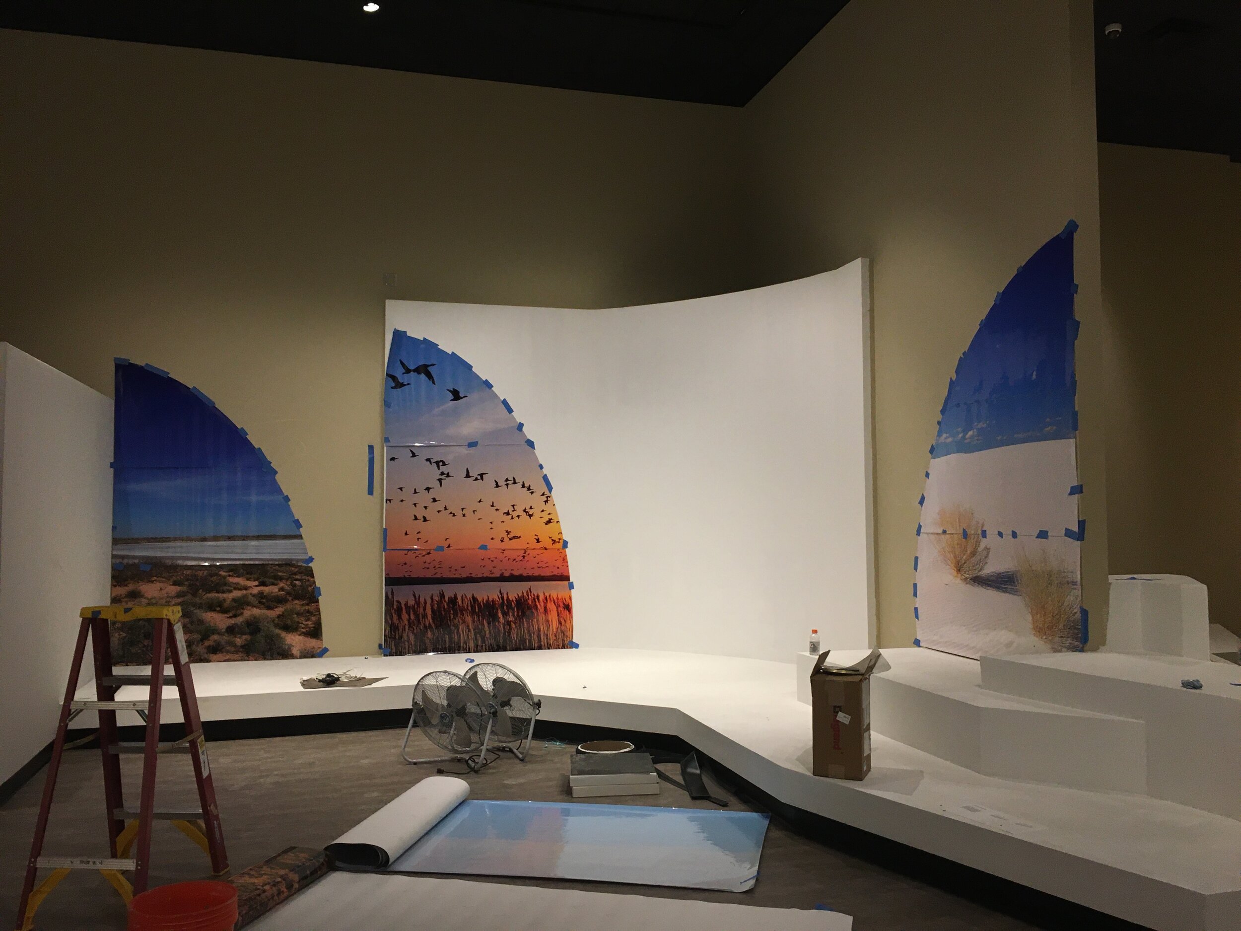 Out exhibits team painted, installed vinyl background, text panels, rail panels, grasses, and railing.