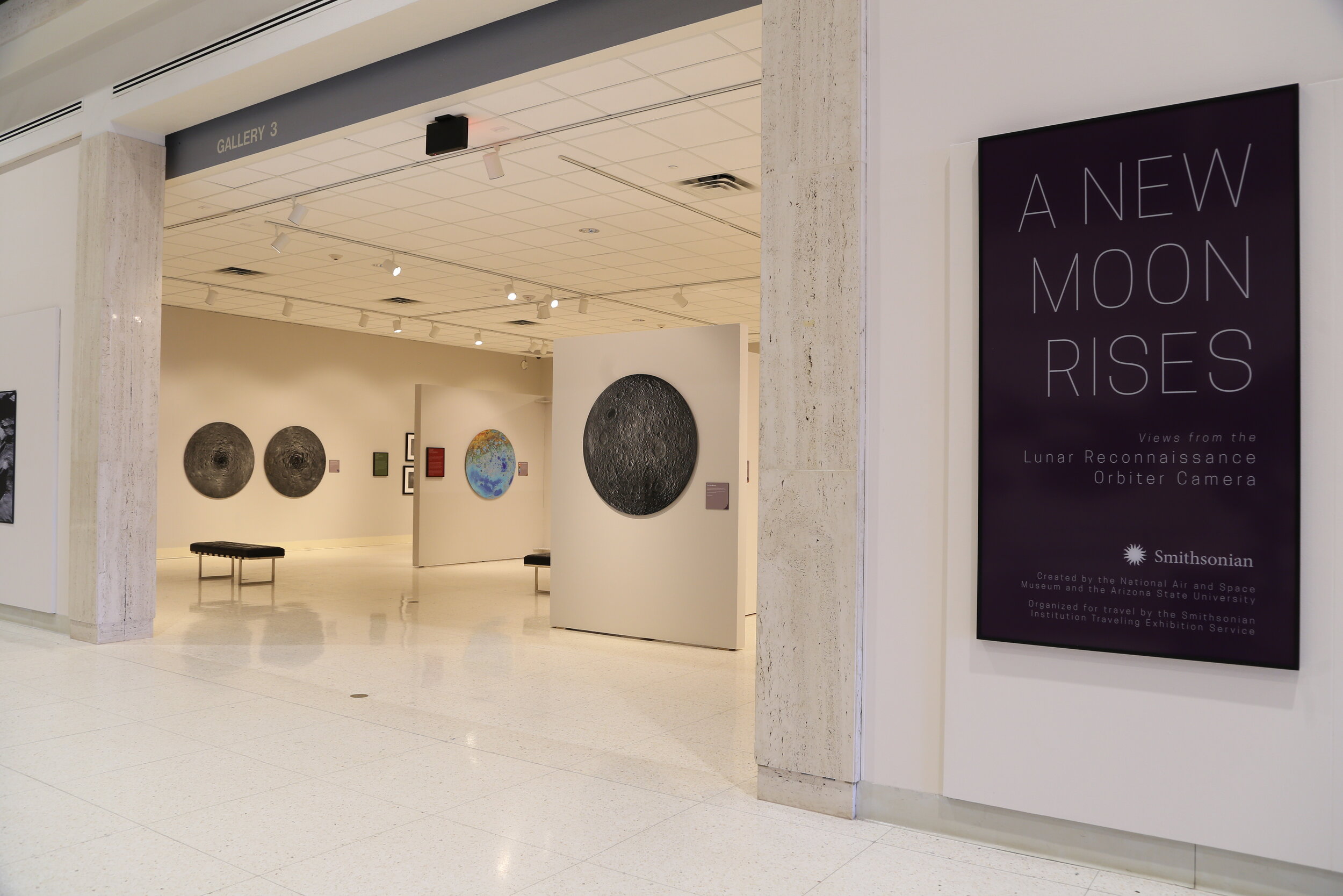 A New Moon Rises, a traveling exhibition from the Smithsonian, features stunning large-scale photographs of the lunar surface captured by the Lunar Reconnaissance Orbiter Cameras (LROC) between 2009 and 2015. The highly detailed photographs reveal a celestial neighbor that is surprisingly dynamic and full of grandeur and wonder.